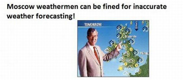 Prezentatorii meteo din Moscova pot fi amendati pentru o prognoza a vremii probabile gresite.